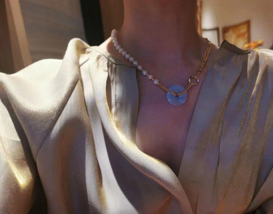 Jade and Pearls Golden Chain Modern Statement Necklace