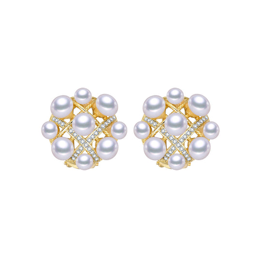 2-in-1 Golden Hearts Freshwater Pearl Front Back Earrings