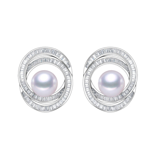 Silver Infinity Love Freshwater Cultured Pearl Studs Earrings