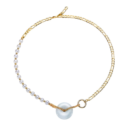 Jade and Pearls Golden Chain Modern Statement Necklace