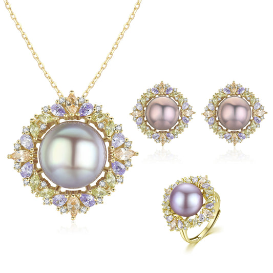 Sparkling Season Edison Pearl Earrings & Necklace & Ring Set