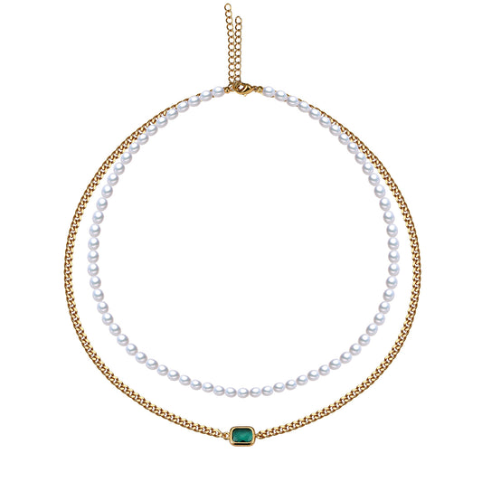5-in-1 Elegant Green Crystal Pearl Necklace