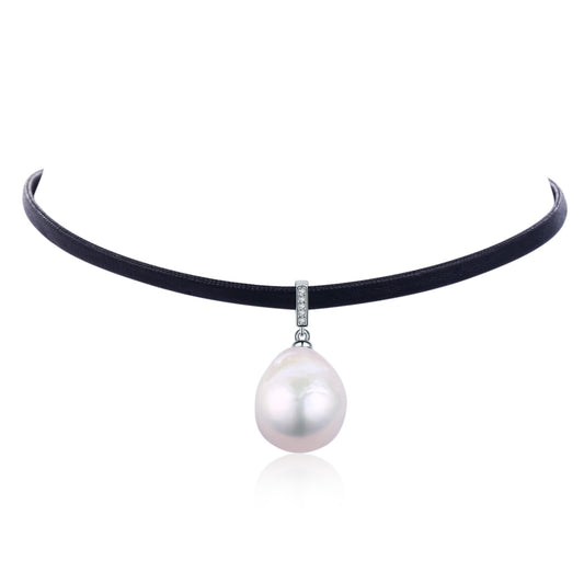 GIANT BAROQUE PEARL LEATHER CHOKER