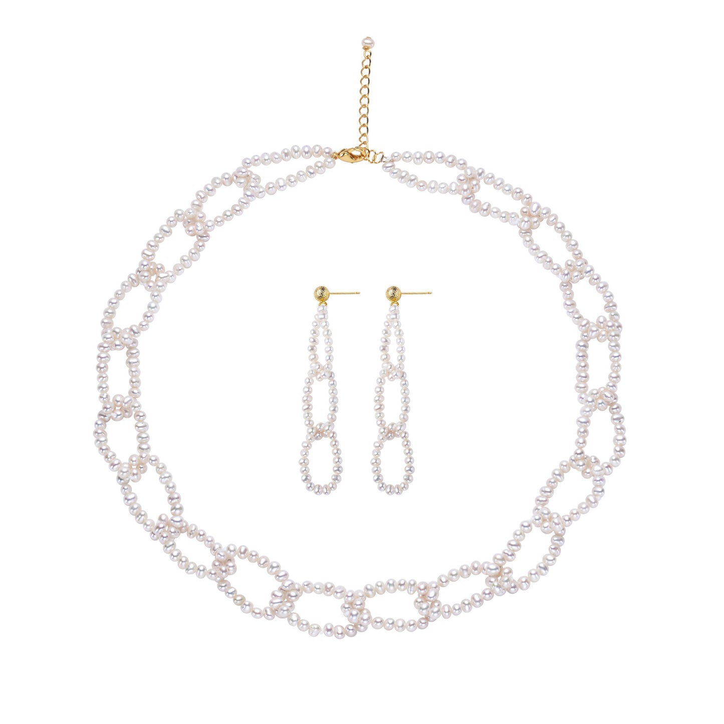 Makes you look stunning and elegant wearing this artistically designed knitting patterns cultured pearl earrings and necklace jewelry set.
