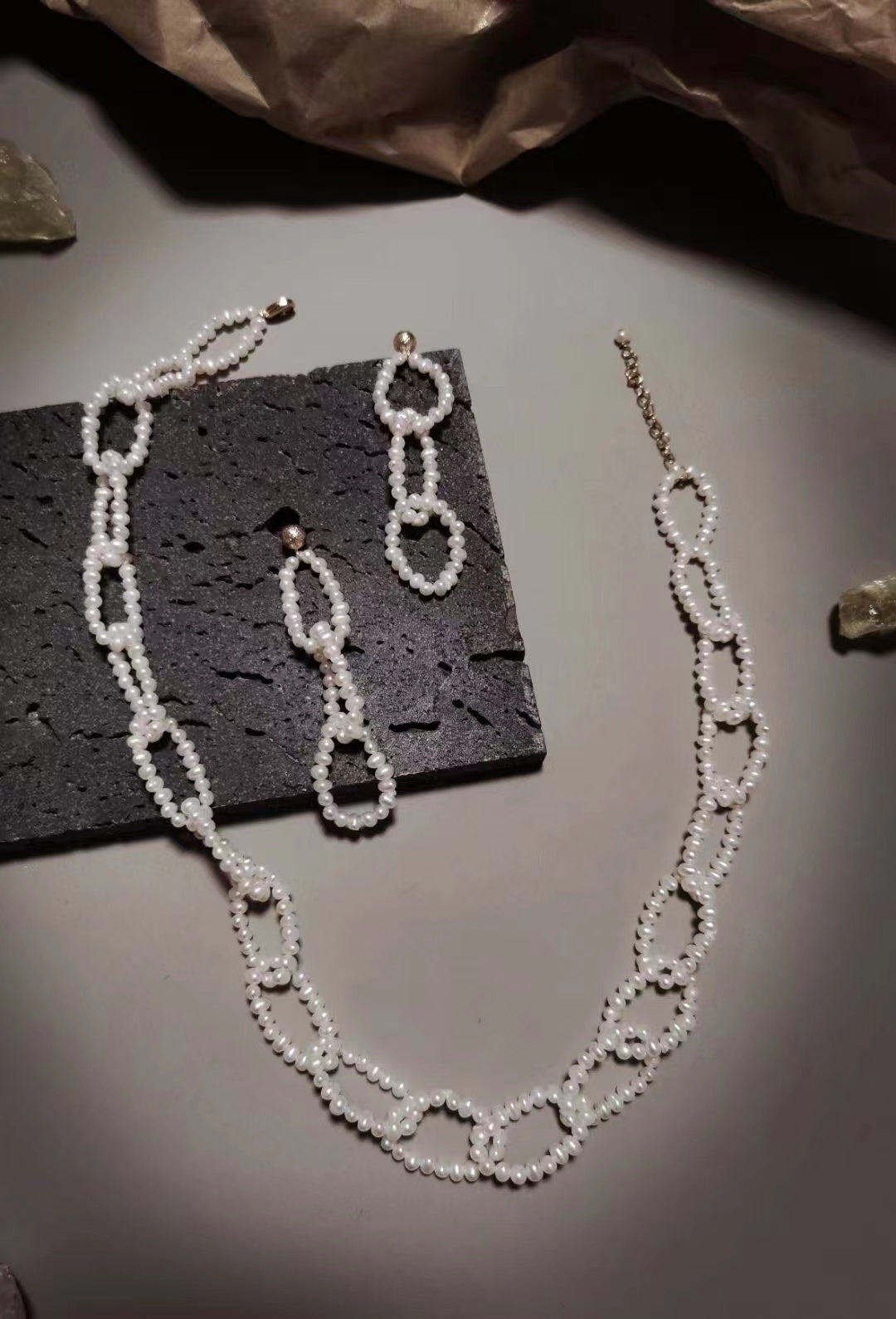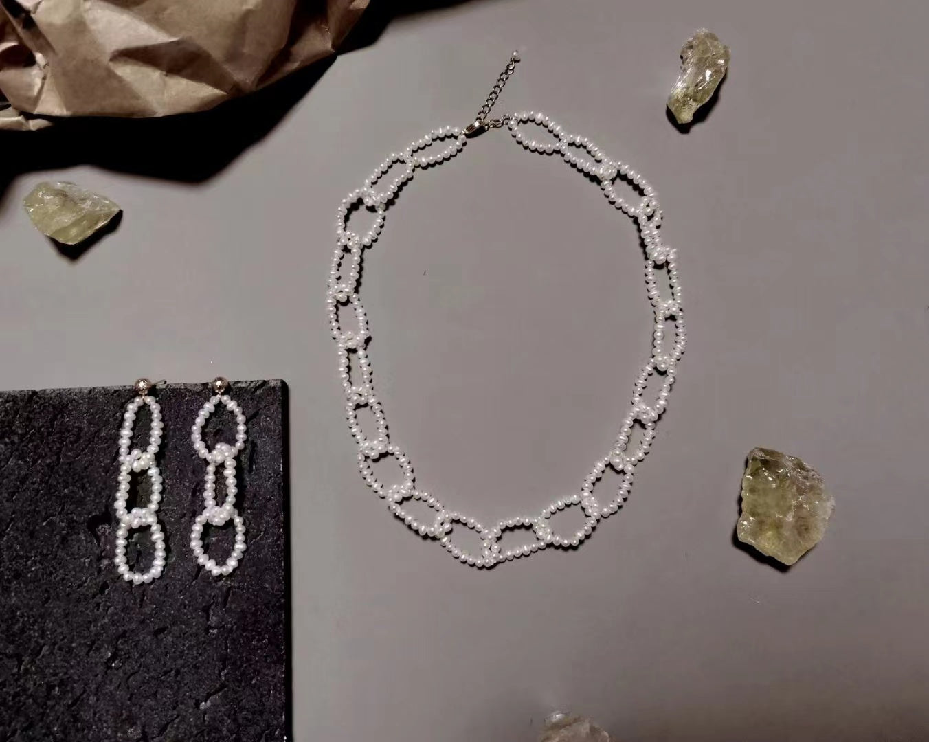 Knitting Patterns Cultured Freshwater Pearl Earrings and Necklace Jewelry Set