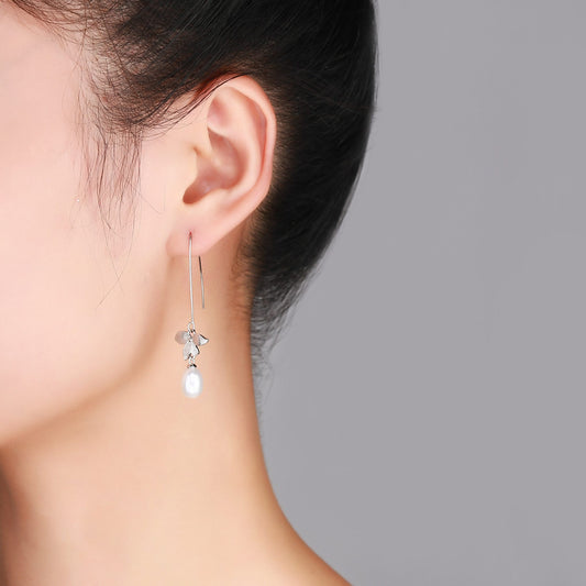 Gold Leaves Pearl Earrings