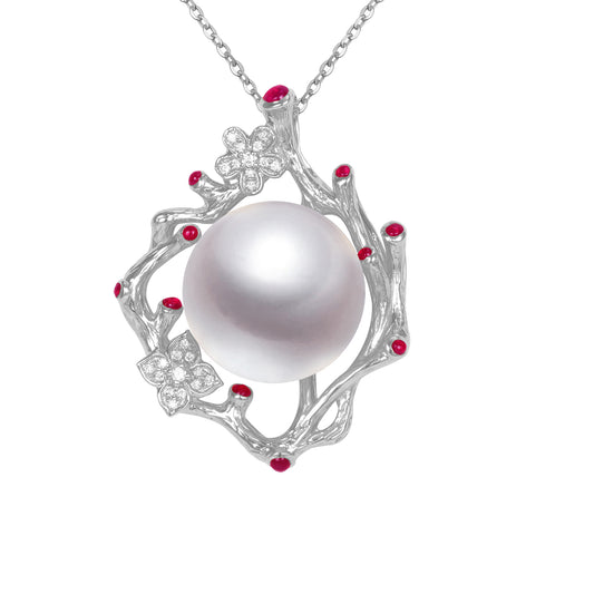 G18k Diamonds Ruby Luxury Floral Pearl Pendant