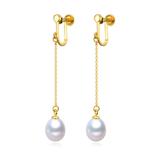 Gold Chain and Pearl Drop Earrings