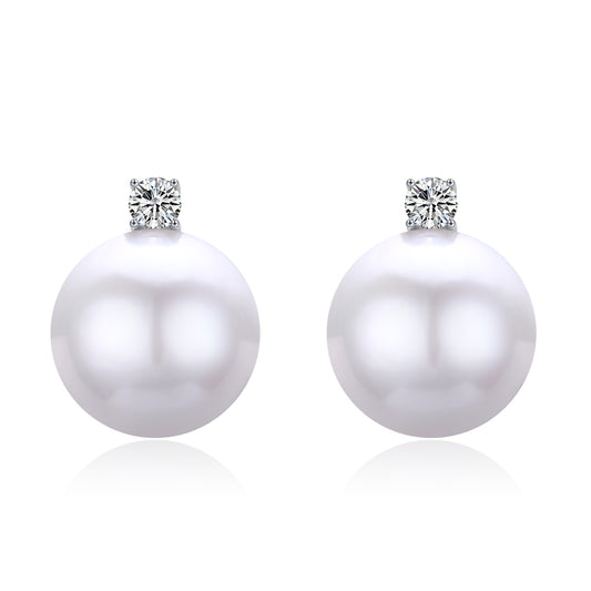 G18K Solid Gold Classic Top Grade & Luster Round Freshwater Pearl Studs Earrings
