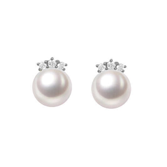 G18k Diamonds The Crowned Edison Pearl Studs Earrings