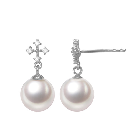 G18k Diamonds Elegant Cross Edison Pearl Studs Earrings
