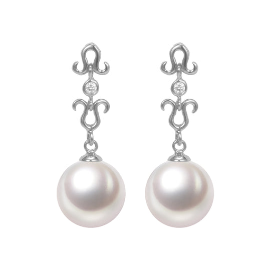 G18k Diamonds Butterfly Edison Pearl Drop Earrings