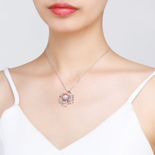 Floral Fantasy Pink Pearl Necklace