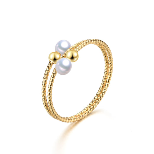Golden Circles Double Freshwater Pearls Ring